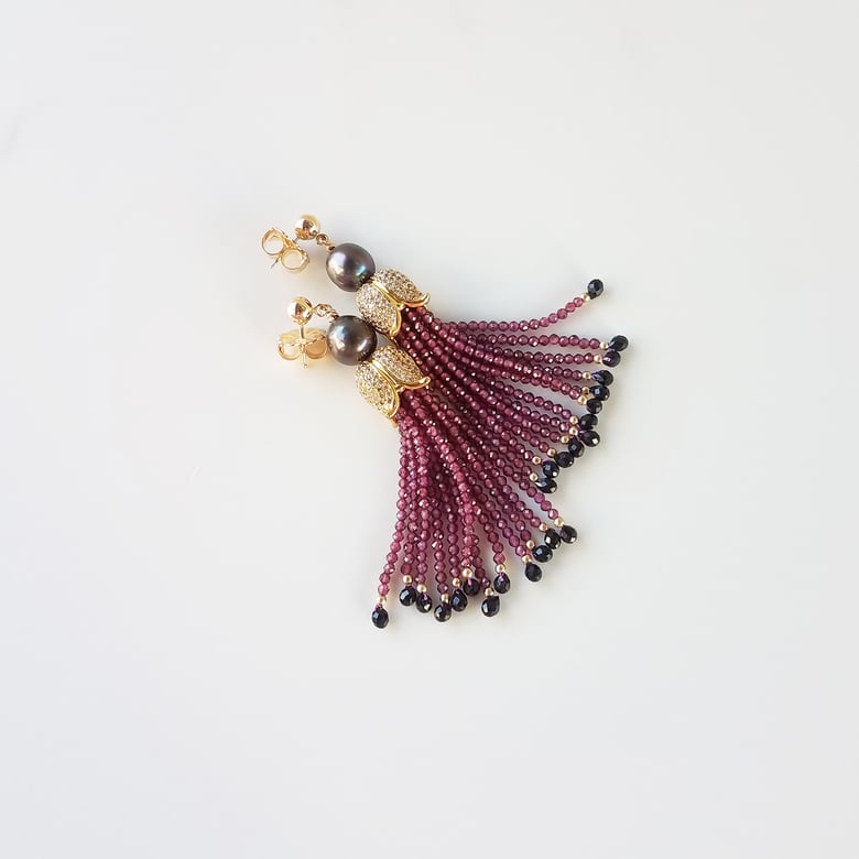 Tahitian Pearl & Rhodolite Garnet Tassel Earrings$525.00 / Sold Out -
