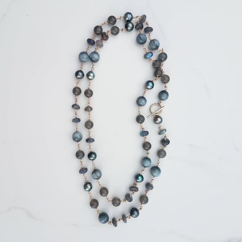 Turquoise, Lapis, & Pearl Necklace$195.00 / Sold Out -