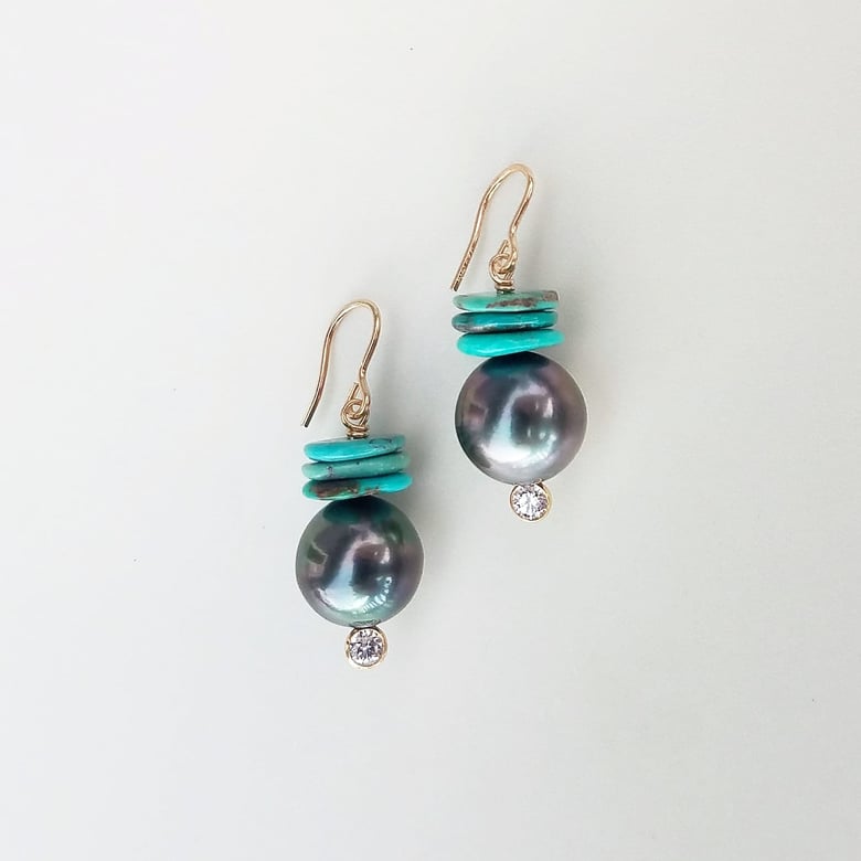 Tahitian Pearl & double Turquoise Earrings$525.00 / Sold Out -