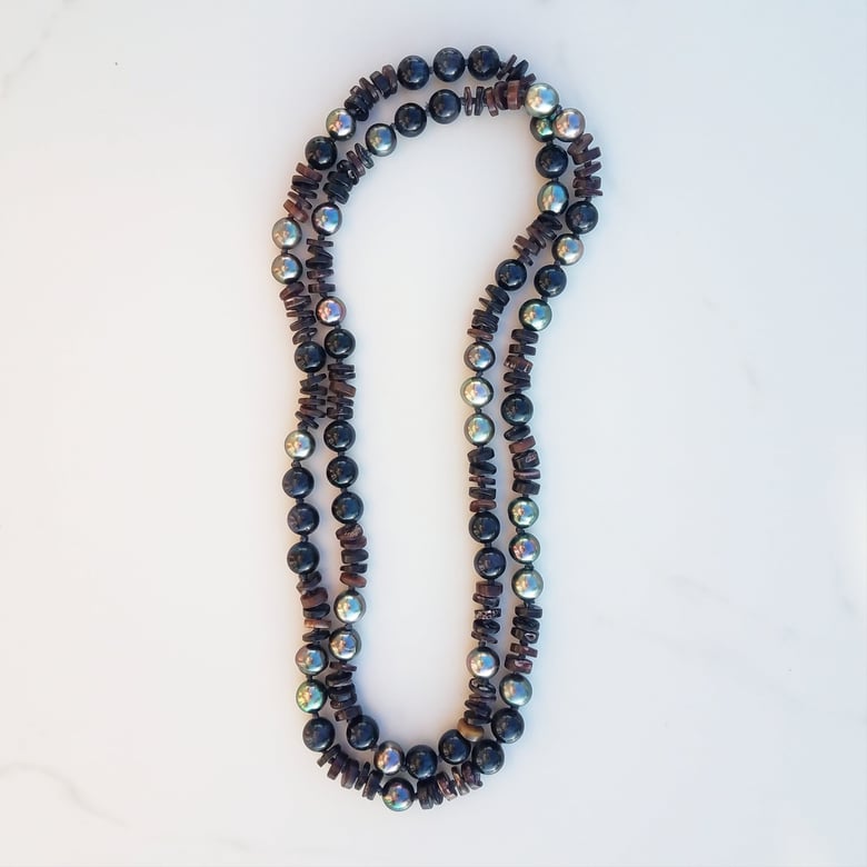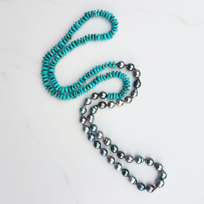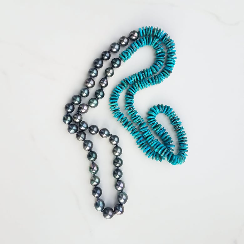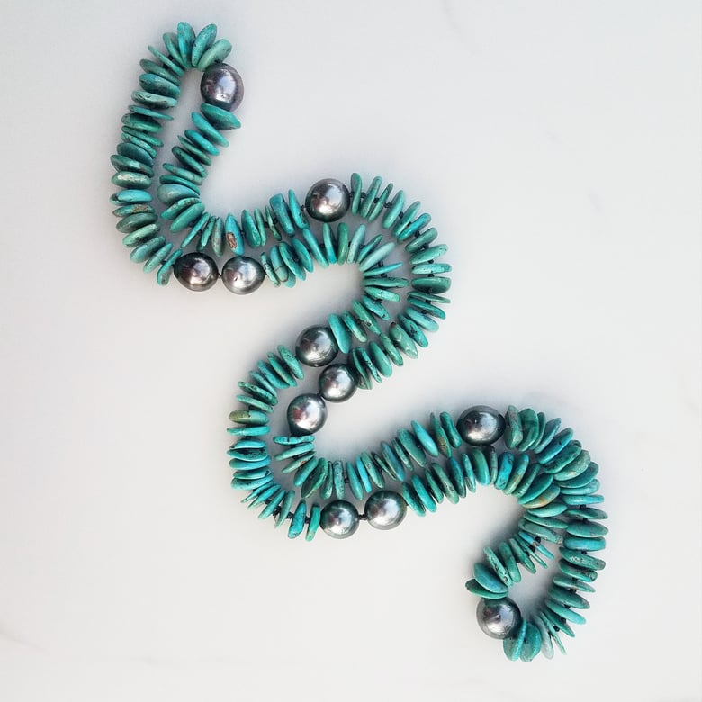 Dark Tahitian Pearls with Turquoise Helix Necklace$3,950.00 / Sold Out -