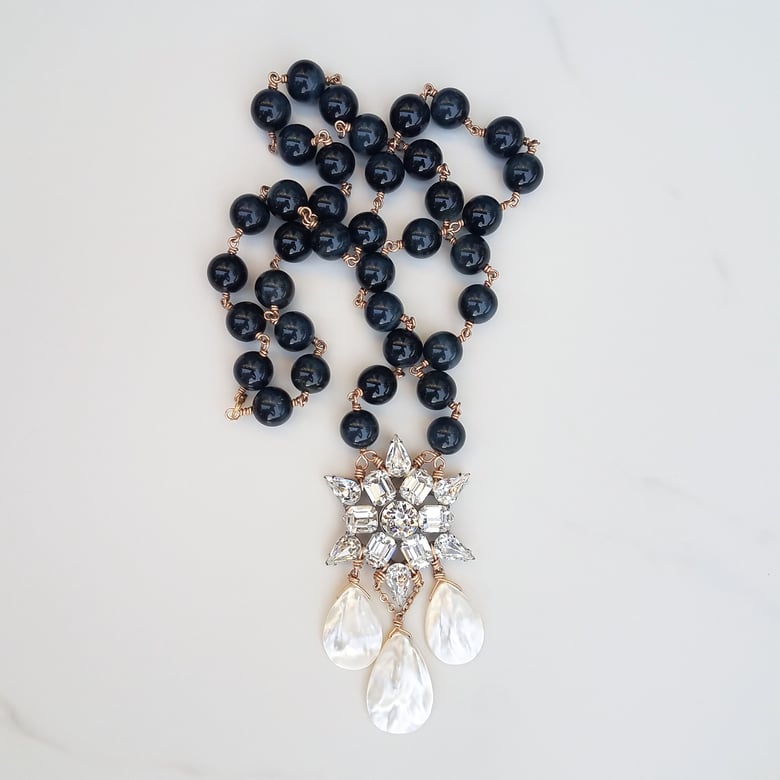 Garnet, Onyx, & Pearl Necklace$195.00 / Sold Out -